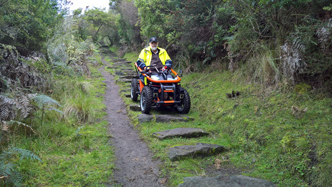 But…it wasn’t the last time! In 2017 I went down – and back up – the steps, and explored Parker Beach, the wreck of the Eric the Red’, a creek and a waterfall. But then I used an off-road mobility scooter, from Overlander Mobility. A true four-wheel drive mobility scooter / wheelchair which is capable of going up and down those stone steps! Give yourself a 5% discount by entering this discount code TIA-5 when you make an enquiry with Overlander Mobility.