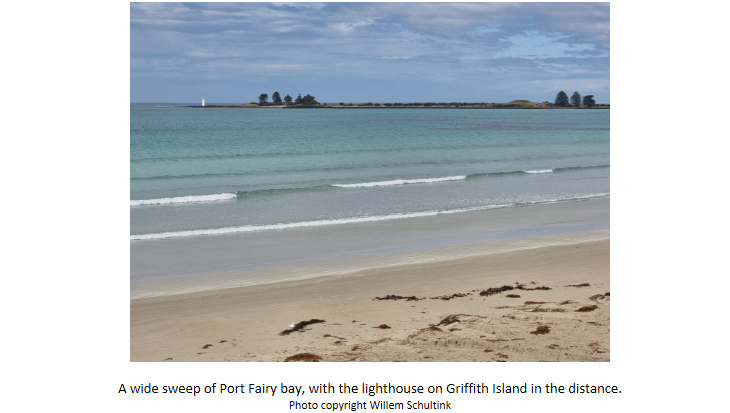 Rabbit Island was where the lighthouse was built, in 1859. Rabbit Island was later incorporated into Griffith Island, so Griffith Island is now the home of the Port Fairy lighthouse. It was built by Scottish stonemasons out of bluestone.